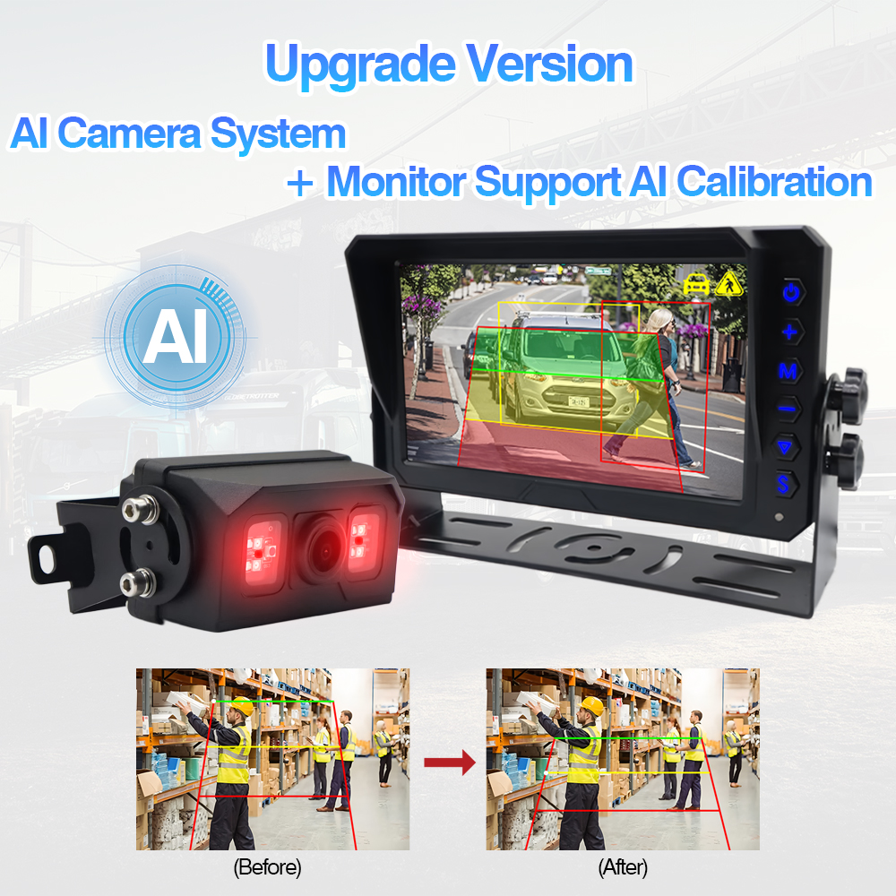 Система камери виявлення сліпих зон зі штучним інтелектом. Вбудована сигнальна лампа, що змінює колірНещодавно запущена камера заднього виду зі штучним інтелектом для виявлення сліпих зон, вбудована попереджувальна лампа, яка змінює колір, камера з вбудованим попереджувальним світлом і функцією сигналізації може працювати зі звичайним монітором AHD. Якщо вам потрібне налаштування калібрування штучного інтелекту, радимо використовувати наш монітор штучного інтелекту для налаштування розміру зони виявлення камери та інших функцій штучного інтелекту.