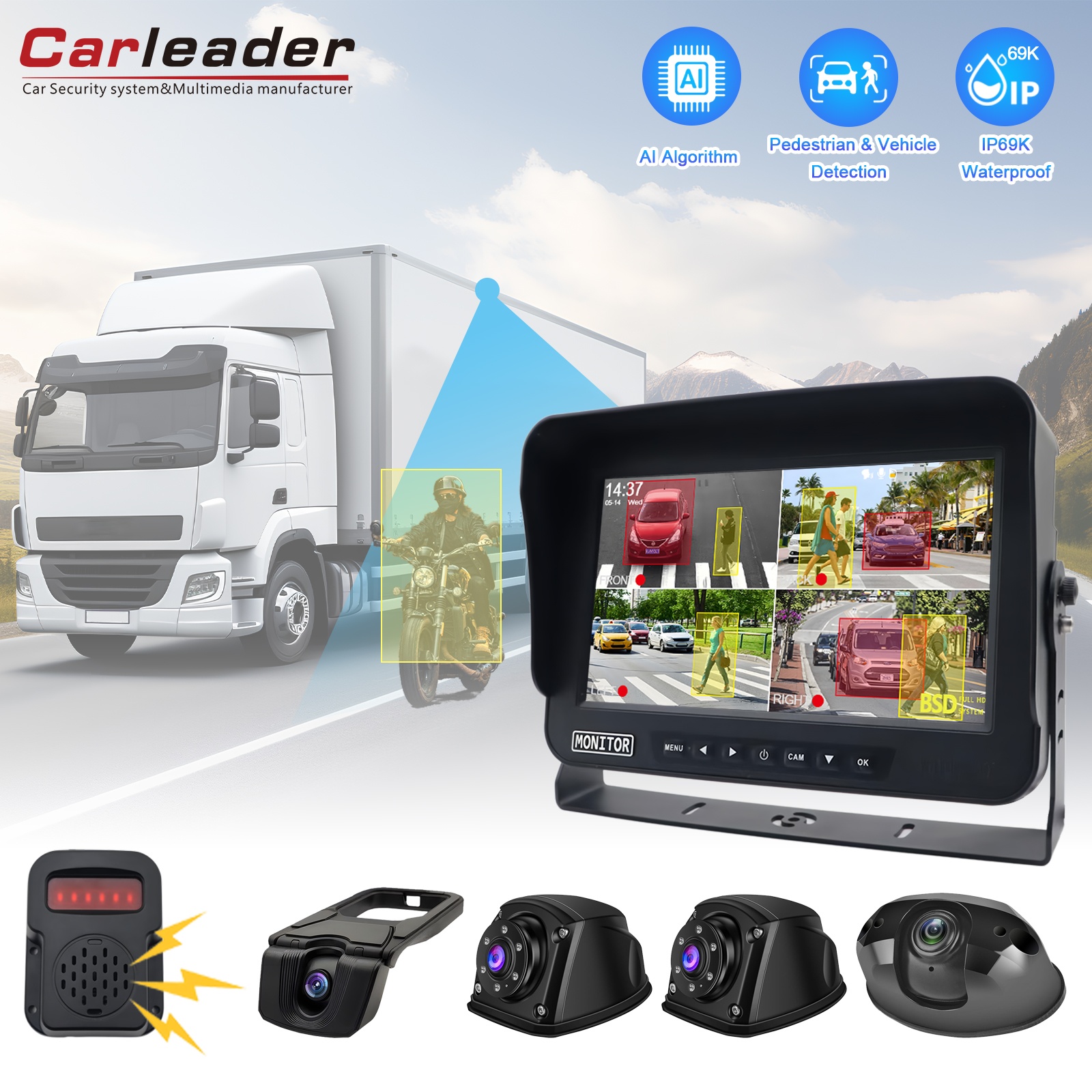 CarLeader 10,1 дюймового транспортного засобу BSD Сліпа моніторингу виявлення плям, призначений для вантажних автомобілів, автобусів, експрес -автомобілів та спеціальних транспортних засобів. Оснащений вдосконаленими алгоритмами зображення AI та високоефективною мікросхемою, ця система інтелектуально виявляє пішоходів, велосипедистів, мотоциклів, фургонів та тварин у сліпих плямах, що своєчасно подає сповіщення про запобігання зіткнень.