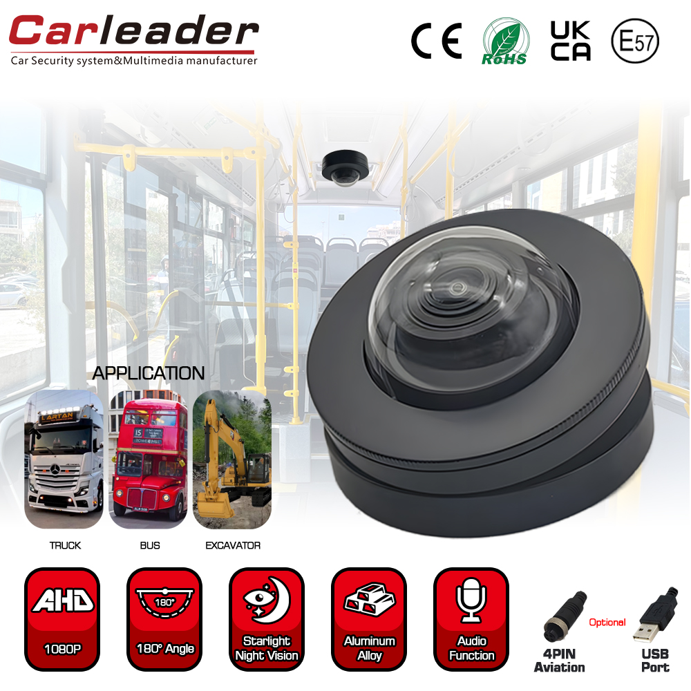 КарлайдШироко кут HD 1080p купольна камера HD 1080pПрацюйте ідеально для логістичного транспорту (важка вантажівка, напіввантаження, фургон), громадський транспорт (автобус, шкільний автобус, тренер тощо), RV, будівельний транспортний засіб тощо.
