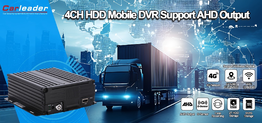 КарлідерМобільний DVR 4CH 1080P HDD підтримує вихід AHDзабезпечує надійне, масштабоване та багатофункціональне рішення для сучасного мобільного відеоспостереження, що гарантує безпеку, безпеку та оперативну аналітику на дорозі.