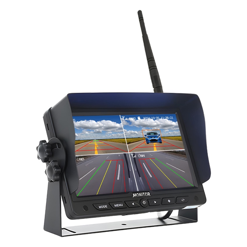 Карлідер7-дюймова бездротова система моніторингу BSD з виявленням сліпих зонце передовий 7-дюймовий цифровий бездротовий монітор і система камер, розроблена для надійного високопродуктивного спостереження. Інтегрований із можливостями ШІ та надійною бездротовою технологією, підтримує виявлення пішоходів і транспортних засобів. Він забезпечує чіткий моніторинг у реальному часі з розширеними функціями виявлення та запису.