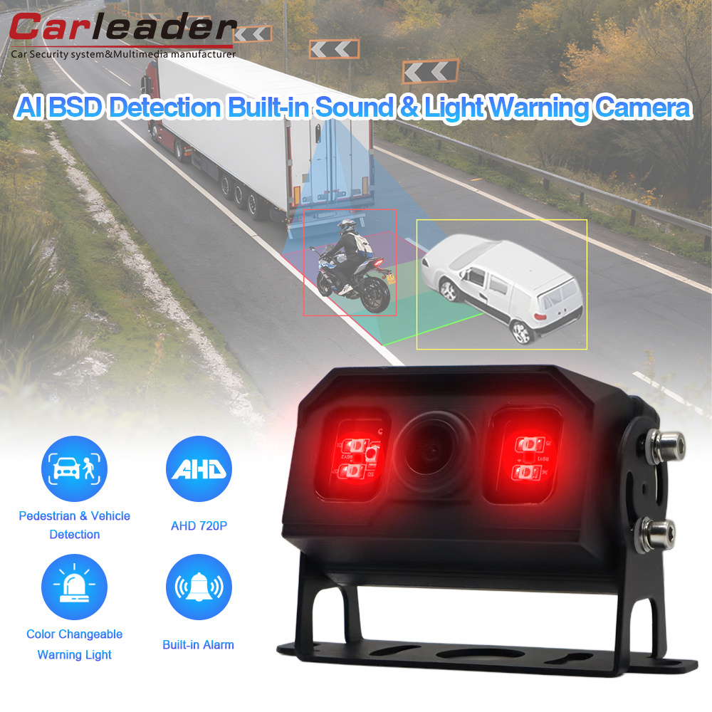 Вбудована звукова та світлова сигналізація Carleader із функцією виявлення сліпих зон із штучним інтелектом може працювати окремо без підключення до монітора як датчика тривоги, а також може працювати з нашим монітором зі штучним інтелектом, на якому можна регулювати різні калібрування штучного інтелекту, наприклад налаштування зони виявлення, типу сигналізації, увімкнення та вимкнення значка виявлення тощо.